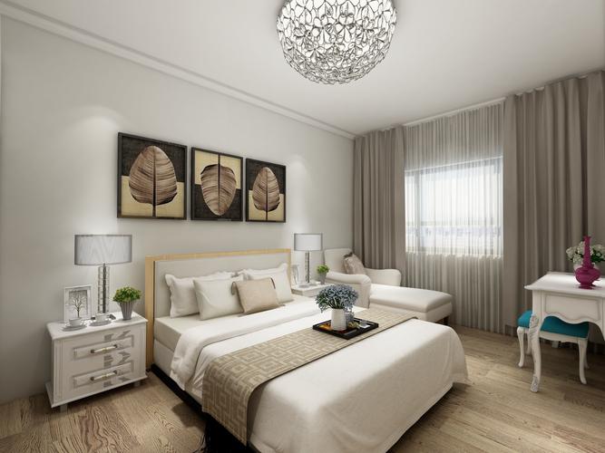 2.第二款方便收纳的卧室柜子装修设计效果图,我们看到这个是一个简欧式风格的设计。地面选择的是原木色的实木地板,还铺了一块地毯,提升整个卧室的温暖的感觉。它的床头柜以及衣柜都是使用的米白色的木质材料去打造的,看起来非常的清新自然。在床头处的背景墙是做了一个软包的背景墙,符合我们平常装修欧式风格的设计。它的衣柜是做了一些开放式的区域,方便我们日常的穿着的拿取。还有一些封闭式的区域就是用来收纳的了。这是一个多功能的衣柜,非常的实用。