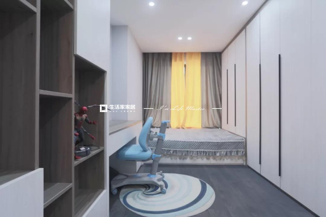 室内将飘窗做成了榻榻米,并配备了书桌和大面积的收纳空间。
