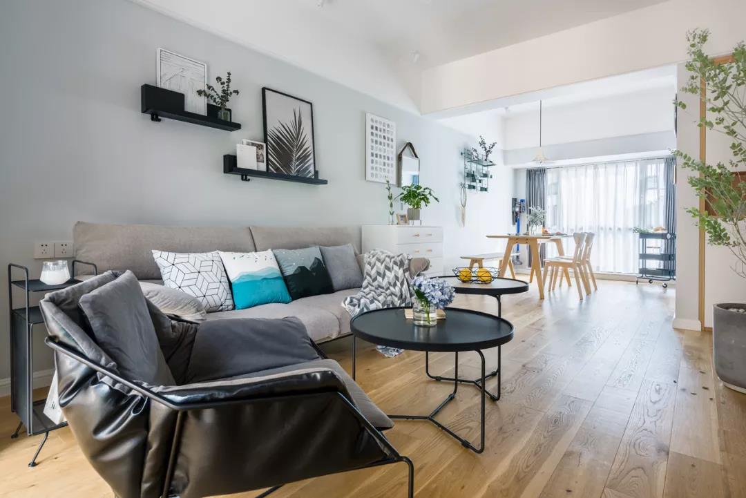 餐椅的材质和配色在选择上非常的灵巧,浅灰色呼应了沙发的用色,原木色又恰到好处的点亮了就餐区域的色彩并且避免了就餐区域的单调。