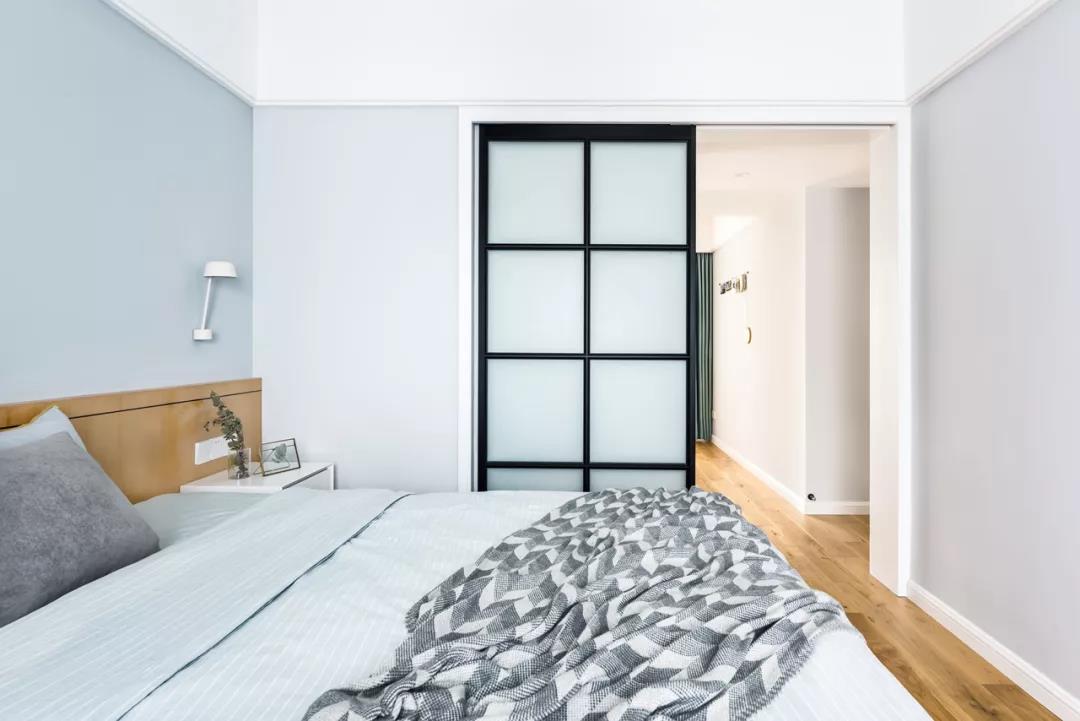 主卧室依然延续灰色的基调,以简洁舒适为主,营造出惬意舒适的睡眠环境。进卧室第一眼就被床头小边几所吸引,精巧别致,细致满分,