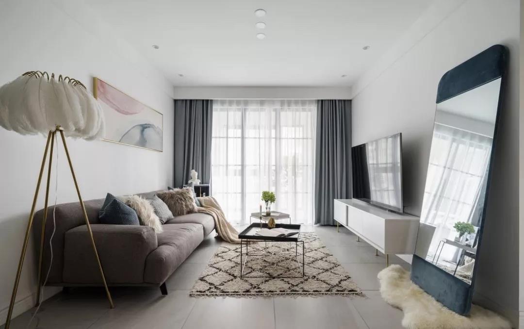 高颜值的全身镜,还用丝绒的边套套起来了,跟整个空间的轻奢质感完全符合在一起。落地羽毛灯、沙发边几、全身镜,作为空间点缀的点睛之笔,实用与颜值兼备。
