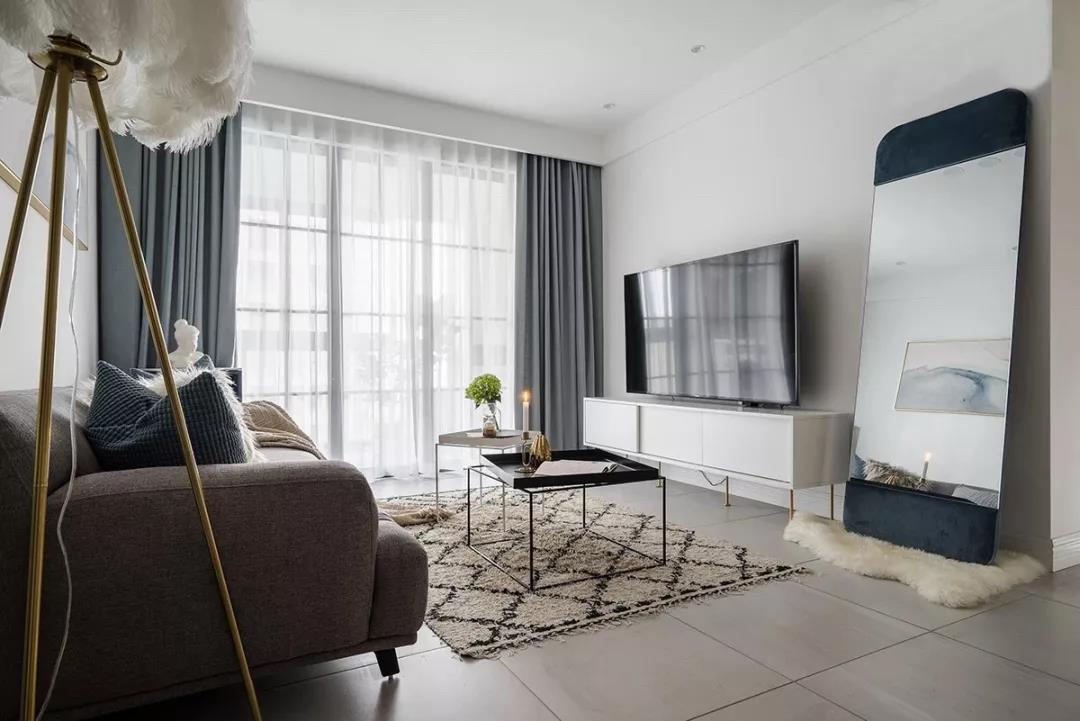白色的纱帘,使得自然光可以充分的投射到客厅从而使得客厅的空间明亮、通透,与外界之间的隔断其恰到好处。