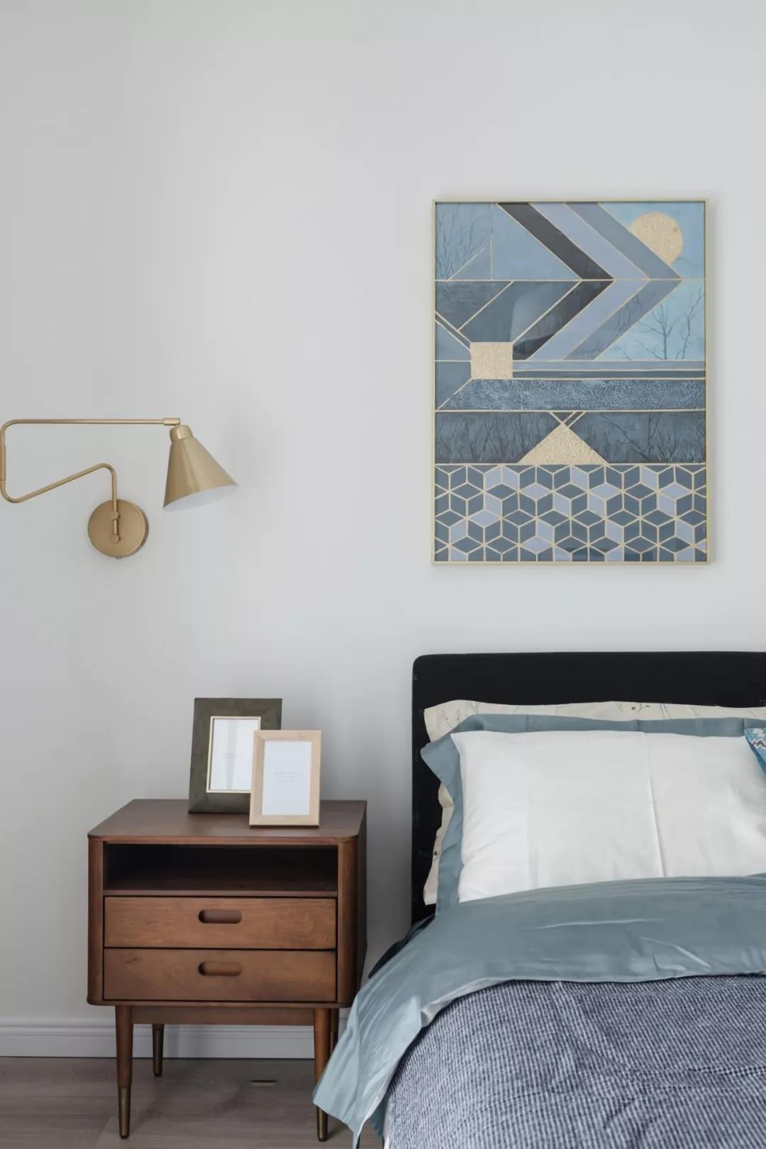 白色的空间,融入灰蓝和金色,房间的色彩也丰富了起来,也并无影响整体安静舒适的氛围。