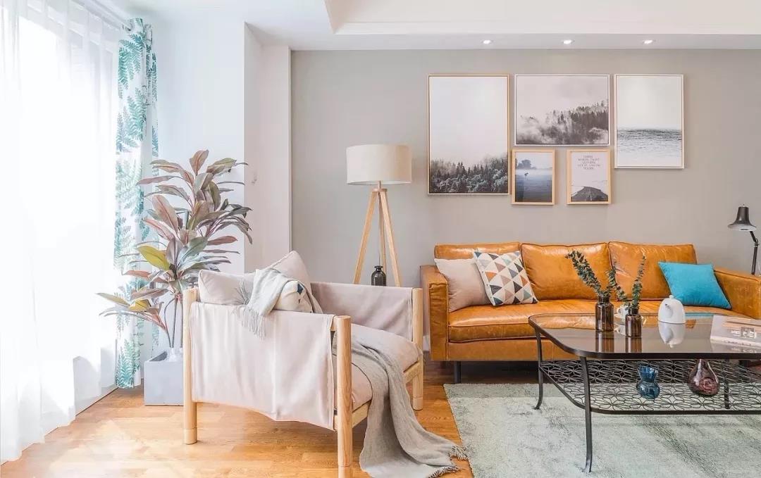 茶几上放着两盆绿植点缀,仿佛引春入室,让家更加的灵动,使得整个家既清新又文艺。
