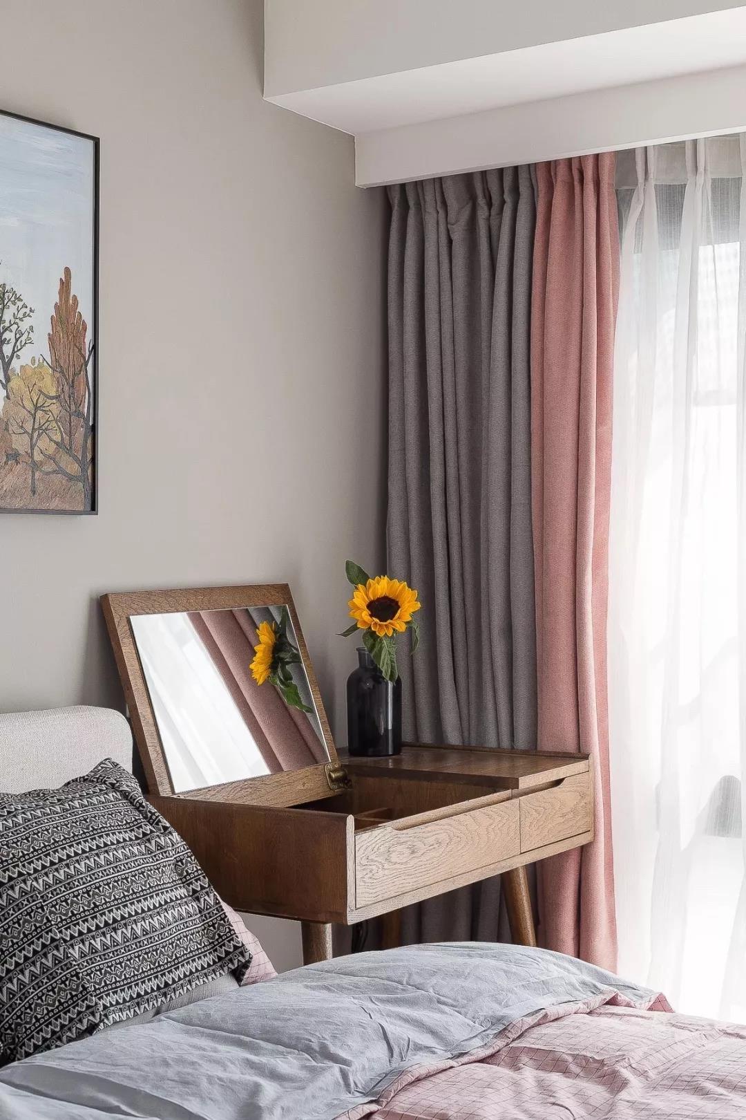 女儿房的颜色要温和静谧,所以这里选择了选择用灰色做基调然后用小面积的粉色作为点缀,整个空间给人的感觉不会轻浮而且舒适感相对会更强一些。