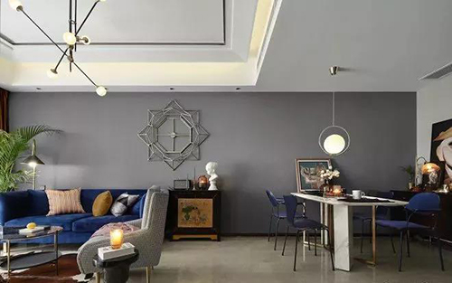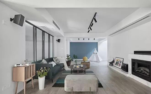 当纯净的蓝色在客厅中惊艳亮相,你所感受到的不仅仅是迎面而来的清爽气息,更多的是一种沉静的生活氛围,它让浮躁的心多了一个自由释放的空间。